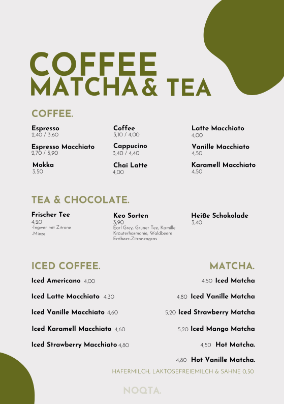 Customer reviews consistently highlight the café's warm atmosphere and the staff's friendly service. One patron notes it as their "Happy Place," praising the delectable Iced Caramel Matcha and the well-prepared matcha drinks. If you’re looking for a cozy environment to savor quality food and drinks, Café NOQTA. is undeniably a top choice in Aschaffenburg!